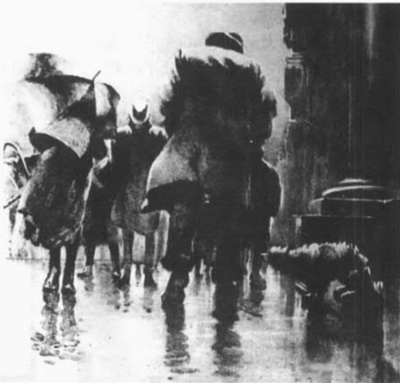 视高法会将不同位置站立的人的同一身体部位“束缚”在地平线上,如下图的奶牛的背部,人的小腿。