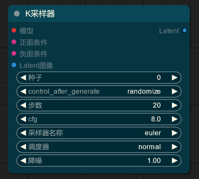 接下来看看实际推理时的 K 采样器的诸参数,注意到这些参数都没有在上面的心智模型中出现,这里需要学习一下。