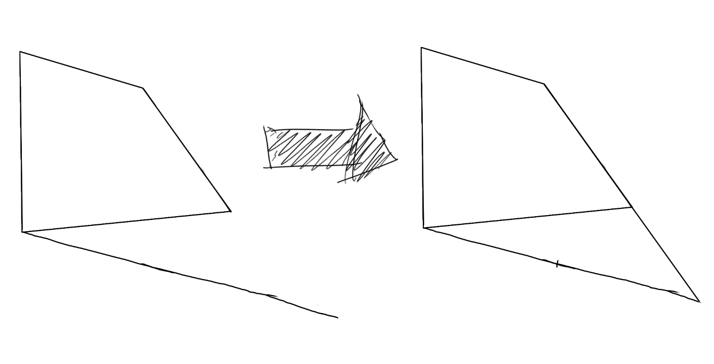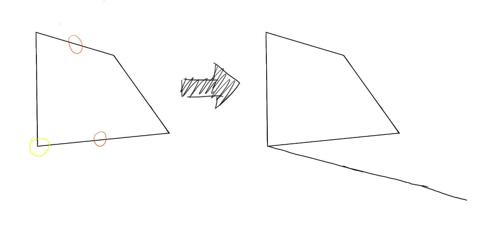 而另一个方案则不利用垂直边,直接在水平边上做文章,因此这个方法同时适用于两对边均是变线的情况,所以在下面再讲。