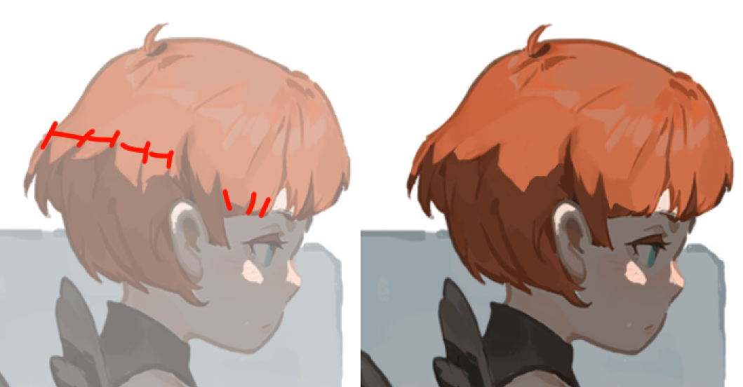 - 这里做固有色的时候可以想象我是在做一种阴天的感觉——我缺光也做进去,然后本来就存在的固有色的变化也要做进去。