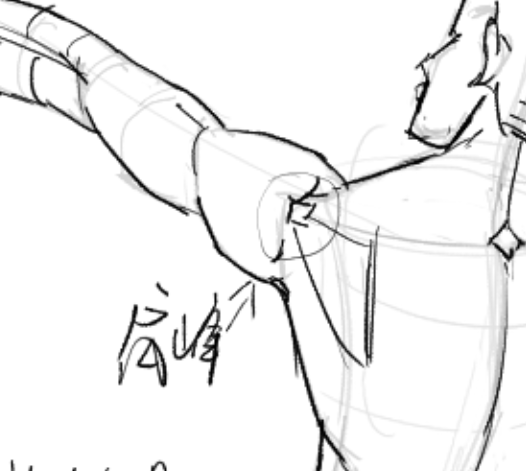 关于大透视的遮挡?比如手指向镜头?解决方法——体块化,思考每个体块的结构(肩膀,大臂,小臂,手,每根手指),把每个部分都画出来,然后擦掉所有遮挡的部分。(我觉得这个思考方式很有实践意义)